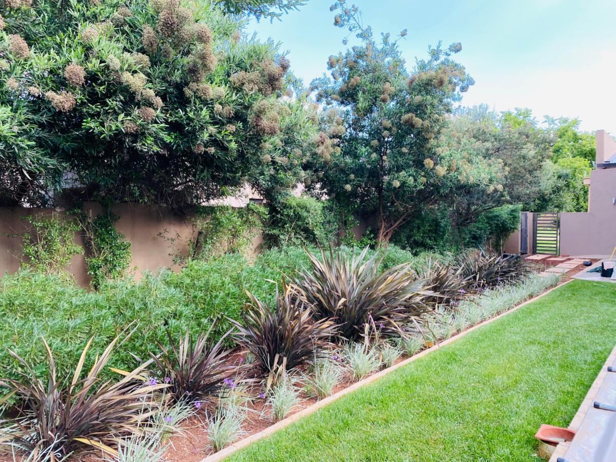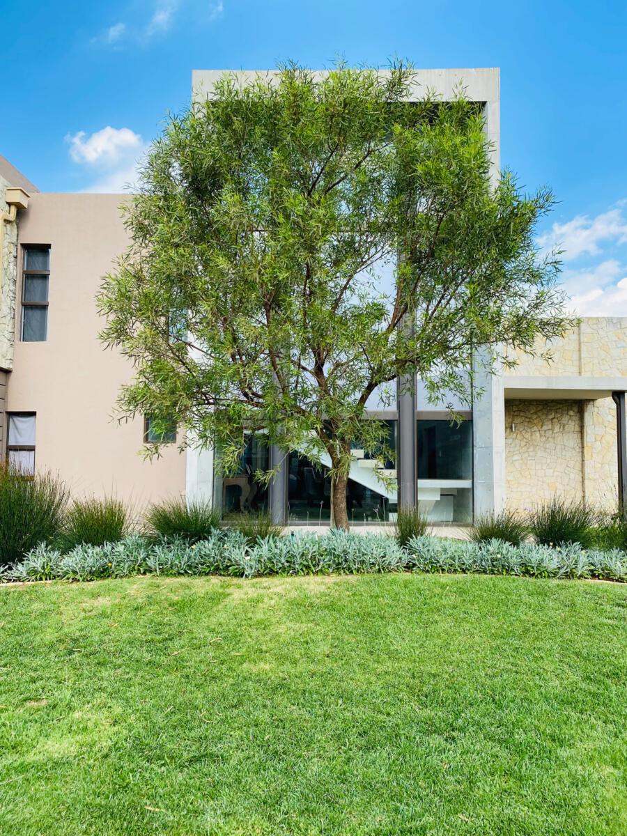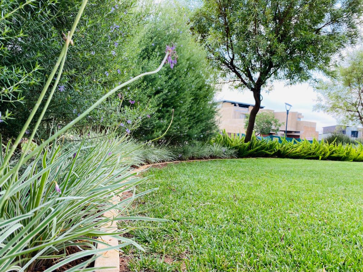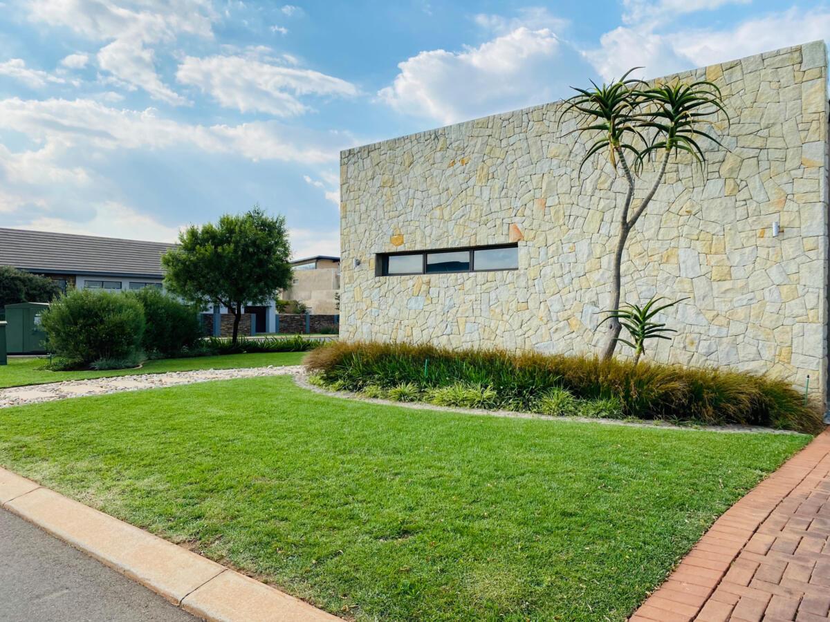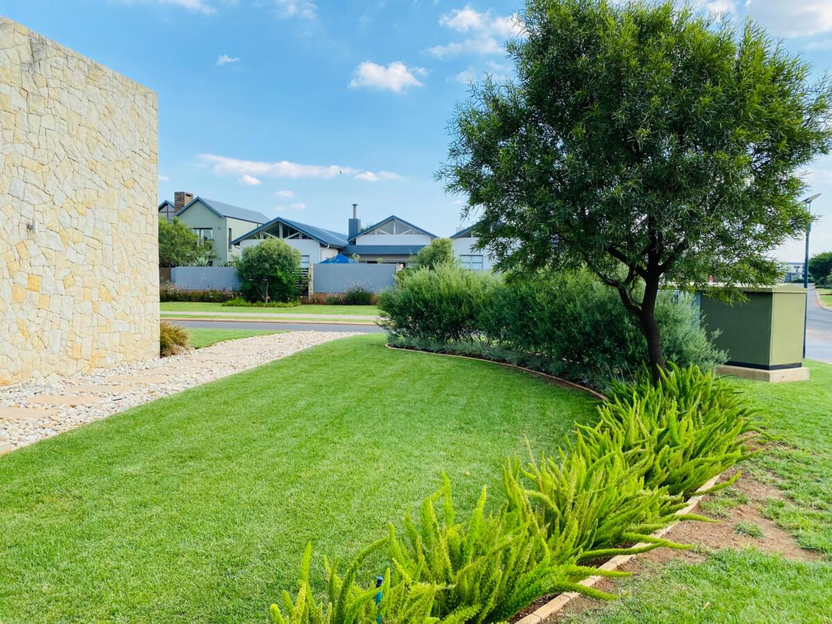 The use of stones was to match the cladding walls which also played a very good role with contrast between the light and dark green plants including the dark green All seasons evergreen grass.